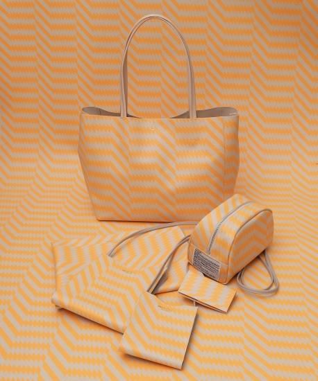 「生活を楽しく」をコンセプトに生まれたテキスタイルブランドMEDICOM TOY「FABRICK」シリーズのコラボレーションアイテム。今回は人気のジグザグ柄がネオンカラーで登場。裏側にカードを収納できるポケットがついているモバイルサイズのサコッシュです。PVC加工が施されているため雨の日でも気兼ねなく使え、汚れがつきにくい生地感です。