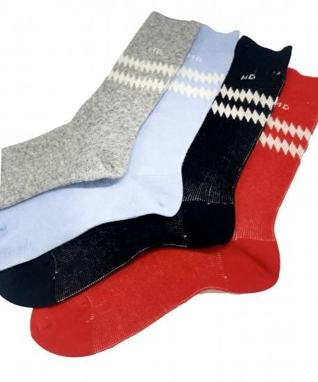 ブランドの定番柄、ジグザグ柄をボーダーラインにみたてた厚手のウールソックス。 温かみのあるアンゴラを使用し、使う毎に柔らかくなり厚手でも圧迫感のないソックスです。 新色が加わり、春先まで合わせやすいカラー展開になりました。 お誕生日のお祝いなどプレゼントちょっとしたプチギフトにも喜ばれるアイテムです。