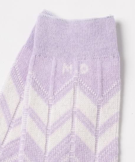 カシミヤとアルパカが混紡された厚手のウールソックス。 柔らかい素材感で厚手でも窮屈感がないのが特徴です。 チューリップをイメージしたボーダー柄をデザインし裾からチラリと見えるのがコーディネートのポイントになります。