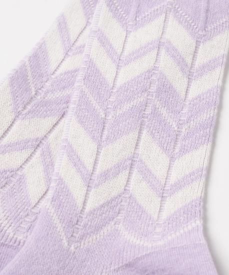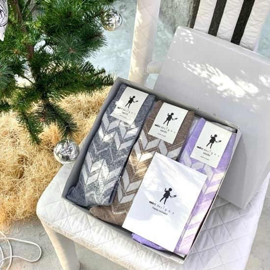 カシミヤとアルパカが混紡された厚手のウールソックス。 柔らかい素材感で厚手でも窮屈感がないのが特徴です。 チューリップをイメージしたボーダー柄をデザインし裾からチラリと見えるのがコーディネートのポイントになります。