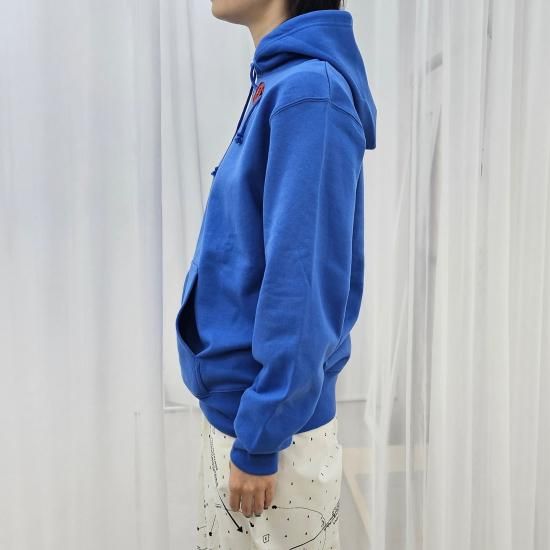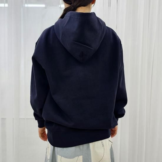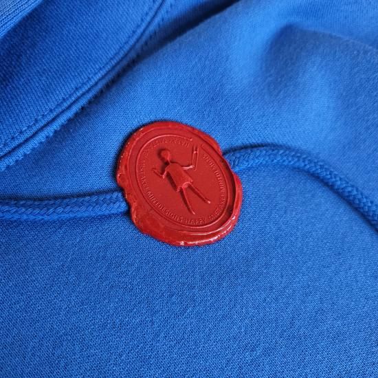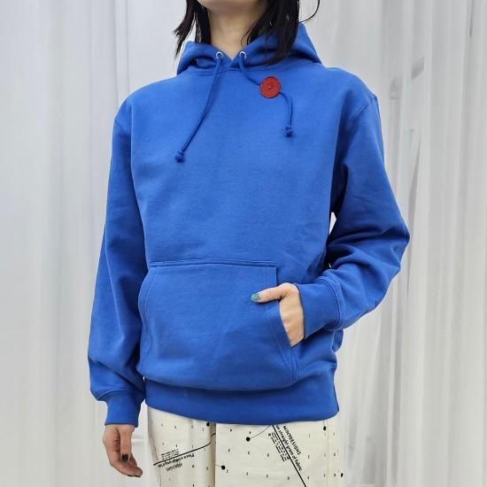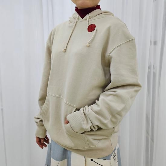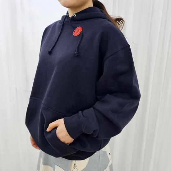 立体的なシーリングスタンプのパーカーが復刻しました! パーカーの紐にDOLL型のワックスシーリングでスタンプを押したようなデザインになっています。 過去のコレクションで登場した時には受注完売するほど人気のデザインで、今回はシルエットをリニューアルして再登場しました。 今回はゆったりと着られるユニセックスのワンサイズで登場。 腰まですっぽりと覆うけれどオーバーすぎないサイズ感にこだわったため、程よいルーズさを両立したスタイルに。 赤いシーリングスタンプのデザインが際立つカラー展開で、コーディネートに取り入れやすいベーシックカラーと、新色ブルーの3色です。