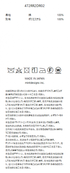 素材:MAIN:COTTON 100% OTHER:POLYESTER 100% (原産国:日本)