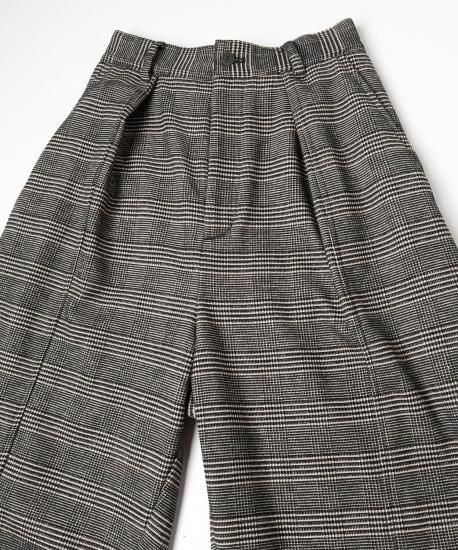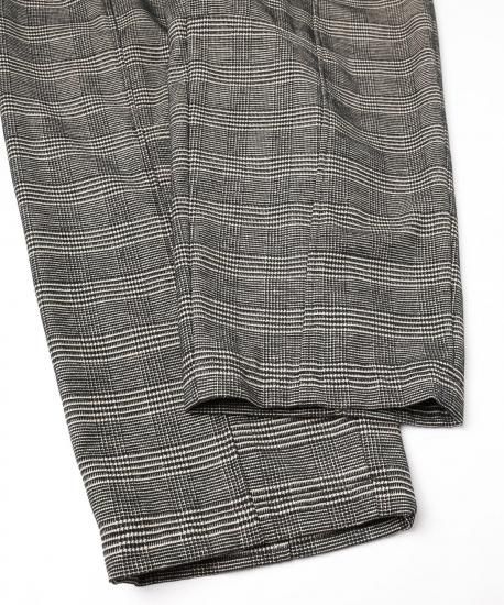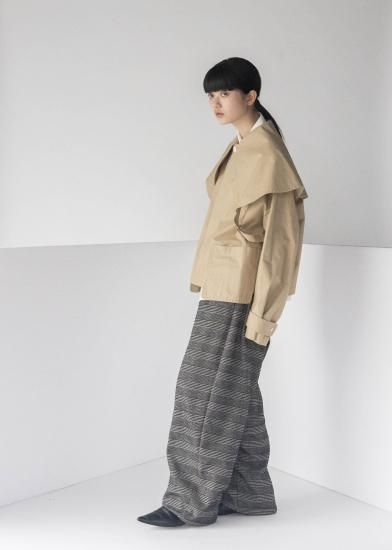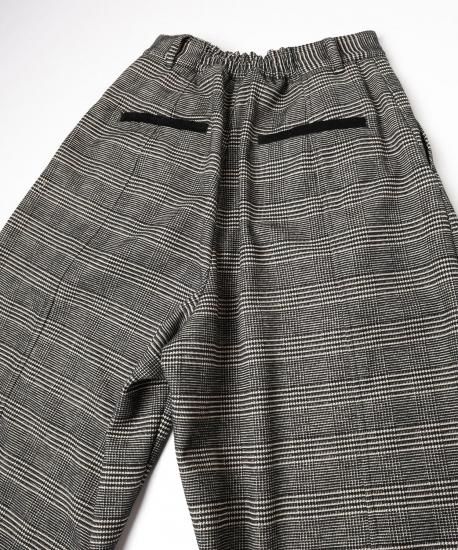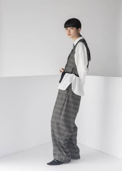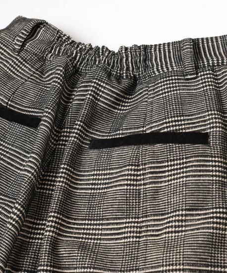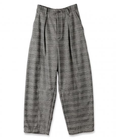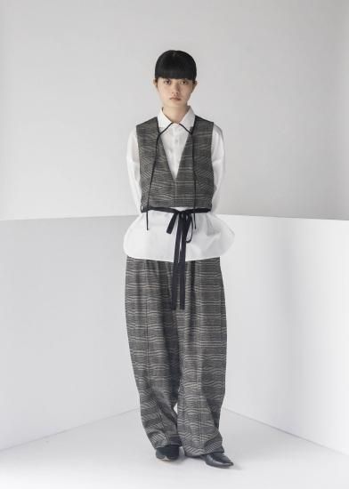 モール糸を使った千鳥格子の生地は凹凸感とモール糸の肌触りの柔らかさが特徴です。形はオーバル型のシルエットでボリュームたっぷりのパンツになります。同素材のベストとセットアップでも楽しめます。