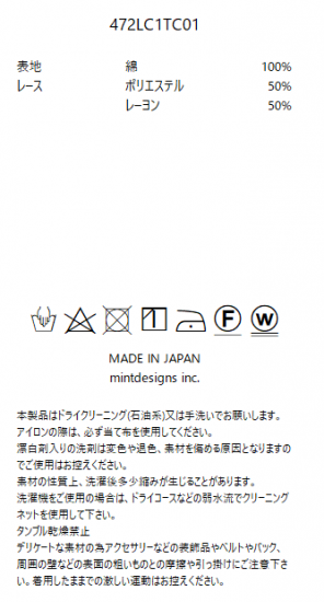 素材:COTTON 100%、LACE:POLYESTER50%,RAYON50% (原産国:日本)