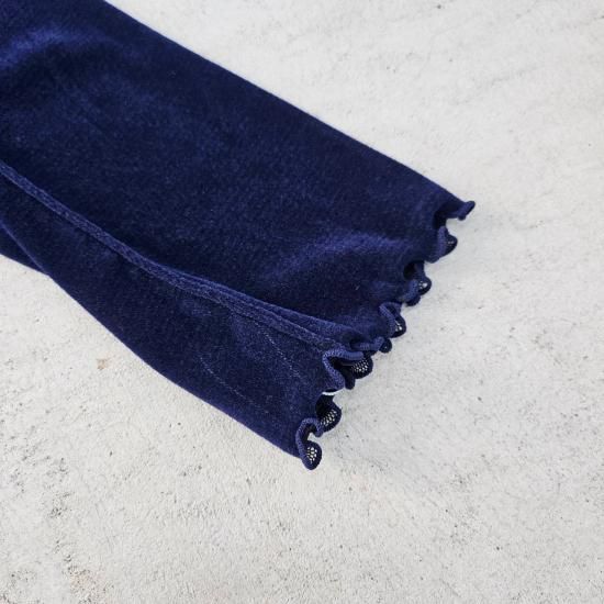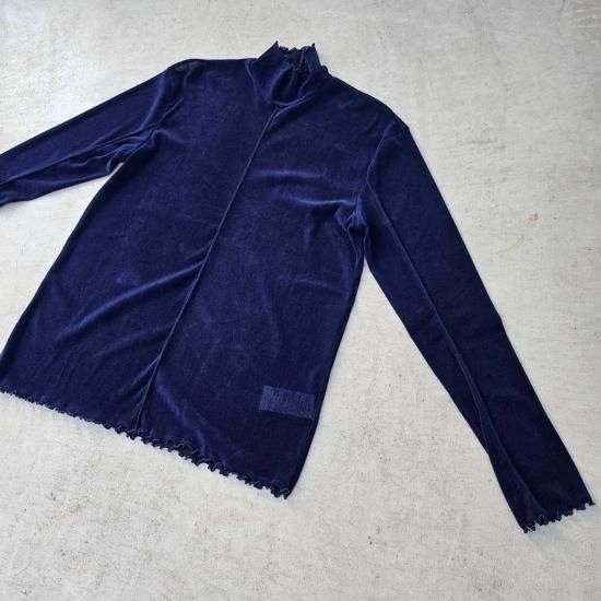 フロッキーが全面プリントされたチュール素材を使用したトップスです。 柔らかい少し透け感を感じる、ベルベットのような素材のトップスで 、コーディネートの幅を広げてくれるアイテムです。