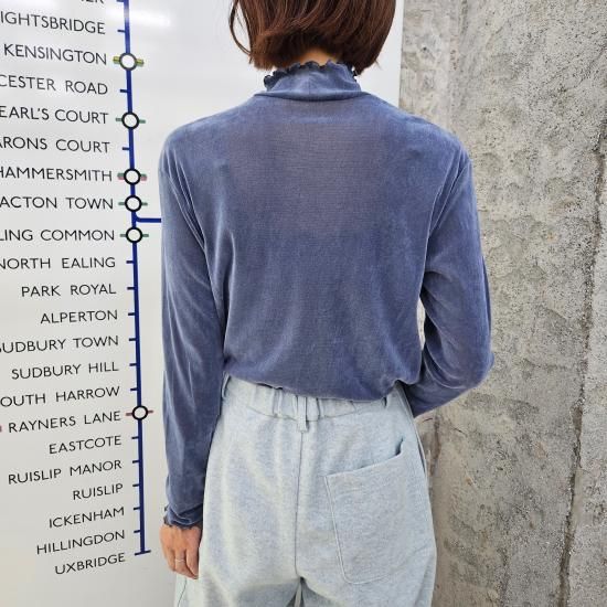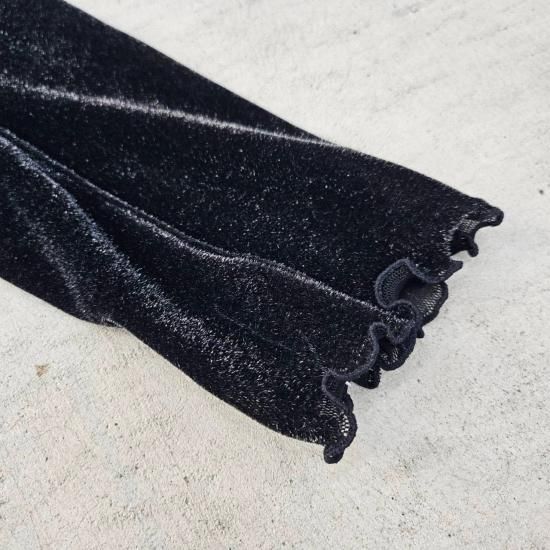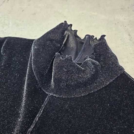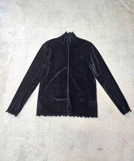 フロッキーが全面プリントされたチュール素材を使用したトップスです。 柔らかい少し透け感を感じる、ベルベットのような素材のトップスで 、コーディネートの幅を広げてくれるアイテムです。