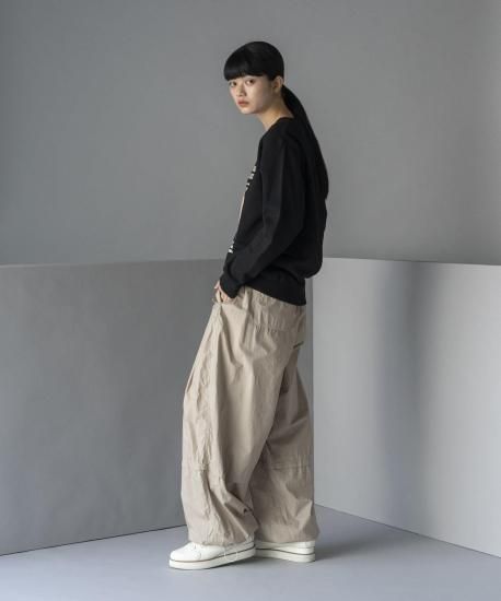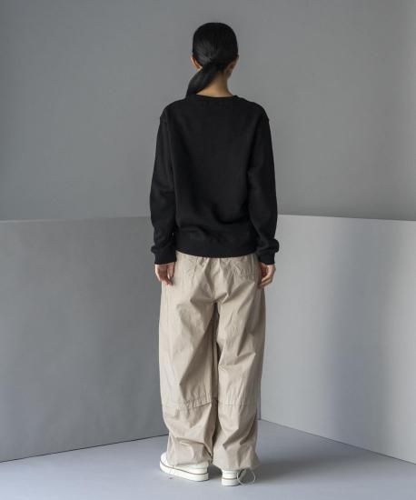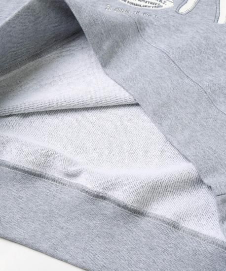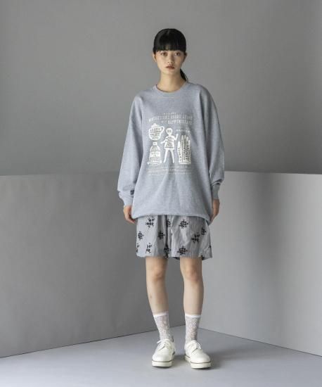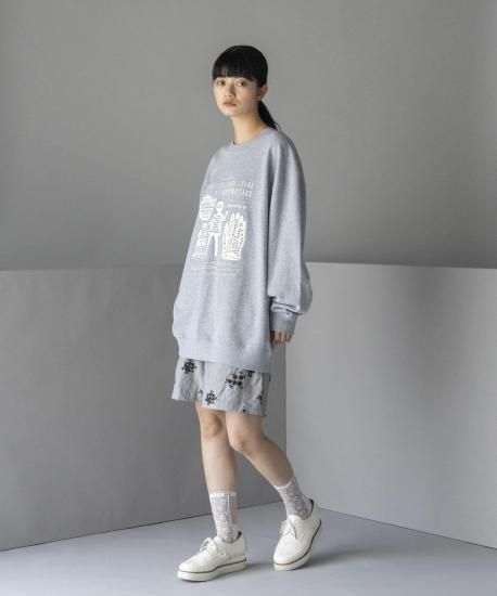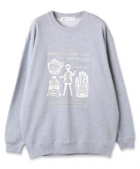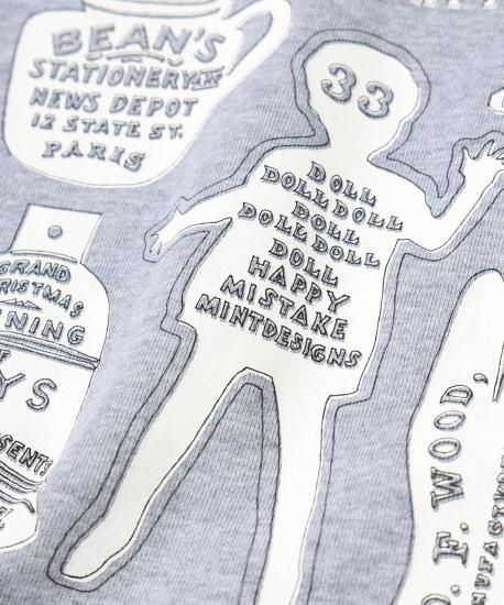 昔の小売店の看板や広告(アドバタイジング)をイメージソースにしたグラフィックのスウェット。あえて手描きのラインのみで構成し、掠れた線の素朴なタッチと、どこか懐かしい温かみのあるモチーフに、クールなアウトラインが加わることで、レトロでありながらも新鮮な印象を生み出しています。
