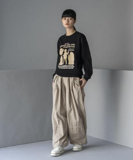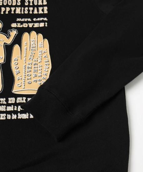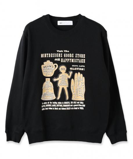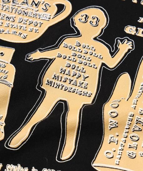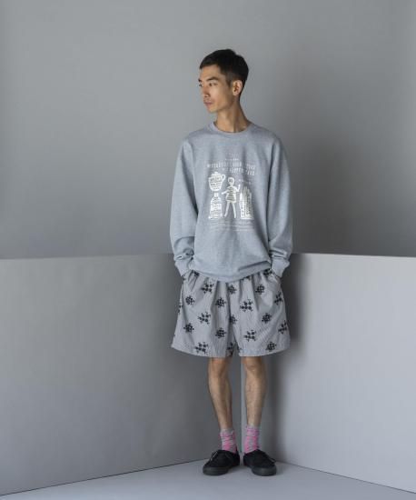 昔の小売店の看板や広告(アドバタイジング)をイメージソースにしたグラフィックのスウェット。あえて手描きのラインのみで構成し、掠れた線の素朴なタッチと、どこか懐かしい温かみのあるモチーフに、クールなアウトラインが加わることで、レトロでありながらも新鮮な印象を生み出しています。
