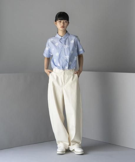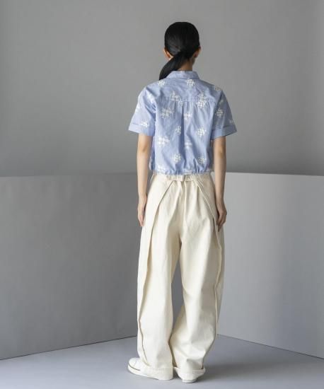 ”エプロンパンツ”はブランド設立当初からある人気のシリーズです。改良を重ねて今も人気のロングセラーアイテムとなっています。今回は12オンスのデニムで製作。デザインデニムとして他にない一枚です。