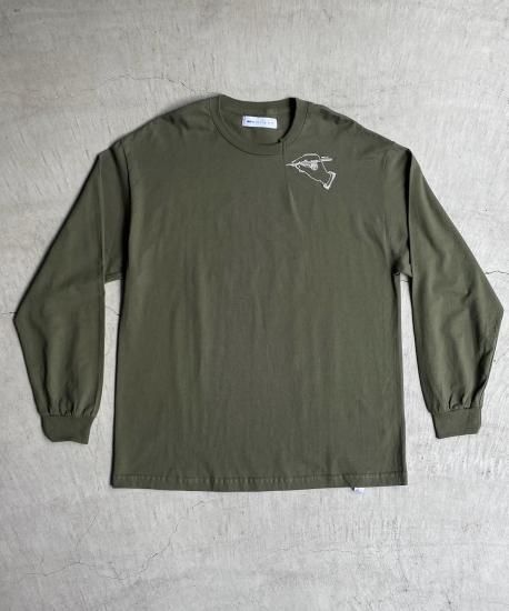大好評の1点もののプリントシリーズがオンラインストアに入荷!デザイナーが1点1点手刷りでプリントを入れたスペシャルアイテムです。オンラインストア限定です。前身頃には、ペンを持った手をクラシックなタッチで描いたモチーフの刺繍をネックラインにタックをとり、その上から施しました。6オンスの肉厚感のあるボディを使用しているため1枚で着ていただきやすい素材感です。 オーバーサイズの展開になっているため、インナーと組み合わせて1枚で着た時とまた違ったスタイリングを変えて楽しむことができます。