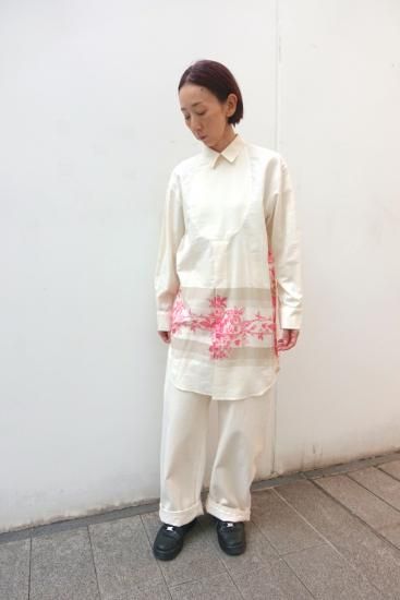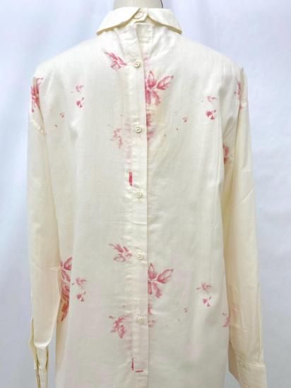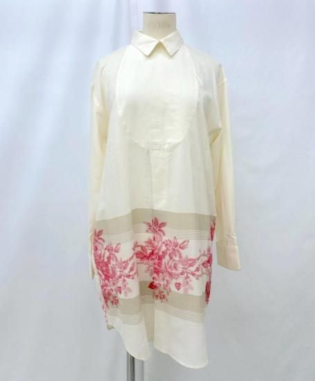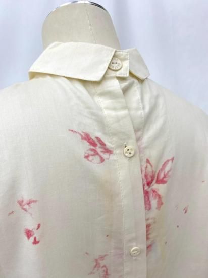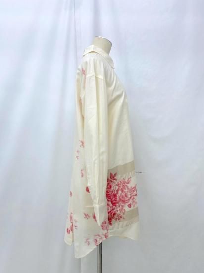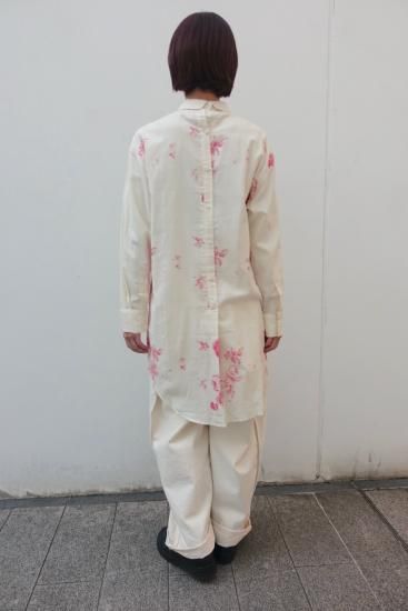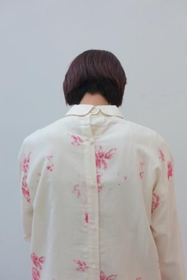 ”midnight book club"をテーマに、昔の渋谷パルコの地下の本屋さんでランウェイショーを行ったコレクションの一品です。ティファニーで朝食を、のオードリーヘップバーンをイメージしてデザインした大きめのシャツです。クラシカルなカッティングとバラの柄のプリントがシックな一品です。