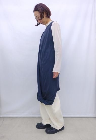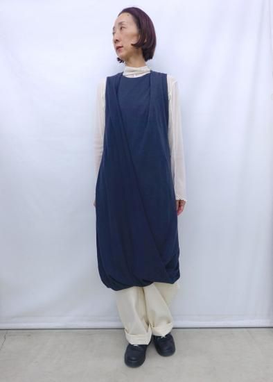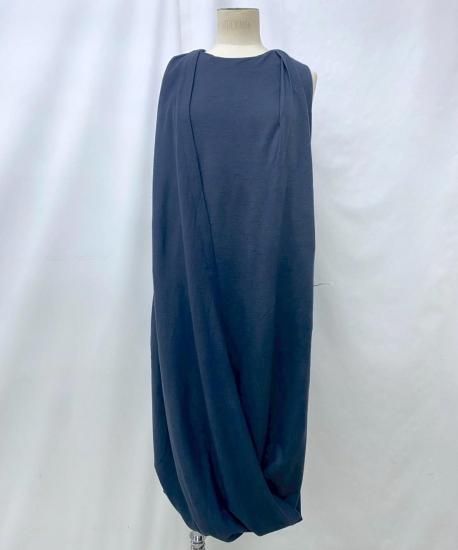 ブランド2年目のコレクションの作品です。この時のテーマは”knitting project"。ツイストされた見頃がドレープを作り出しているデザインのドレスです。素材はウール天竺でしなやかな肌触りです。
