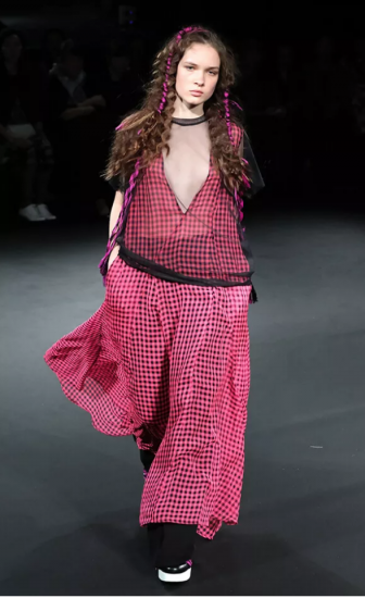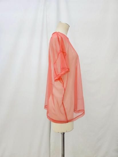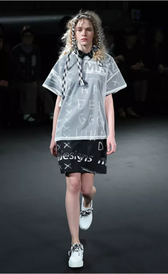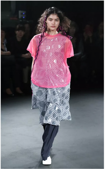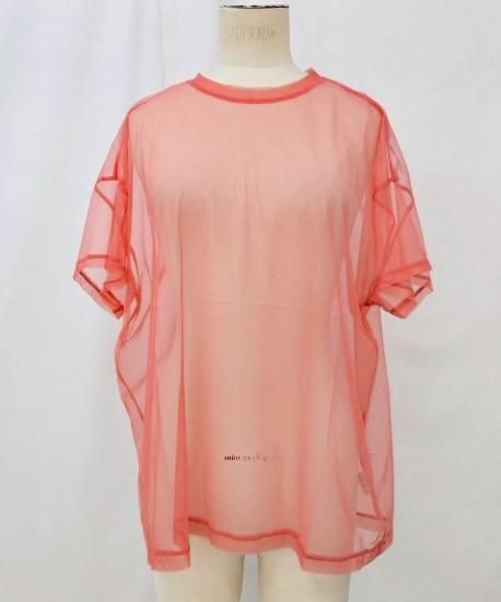 コレクションタイトルは"SUBWAY" ヒップホップがイメージソースとなったコレクションです。いち早くシアーTシャツを発表し、ここからヒットしていきました。このチュールTシャツはサーモンピンクです。コレクションの時はラストルックとして、チェックのワンピースの上に重ねていました。
